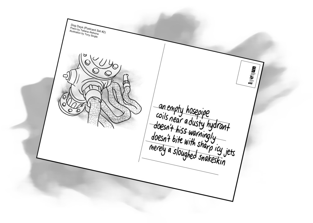 Dog Days (Postcard Set #1) by TETIANA ALEKSINA & TONY SINGLE © All rights reserved 2016 Rate this:Share this:Tweet Click to share on Telegram (Opens in new window) Telegram MoreShare on Tumblr Click to share on Reddit (Opens in new window) Reddit Click to share on WhatsApp (Opens in new window) WhatsApp Pocket Click to email a link to a friend (Opens in new window) Email Click to print (Opens in new window) Print Like Loading...
